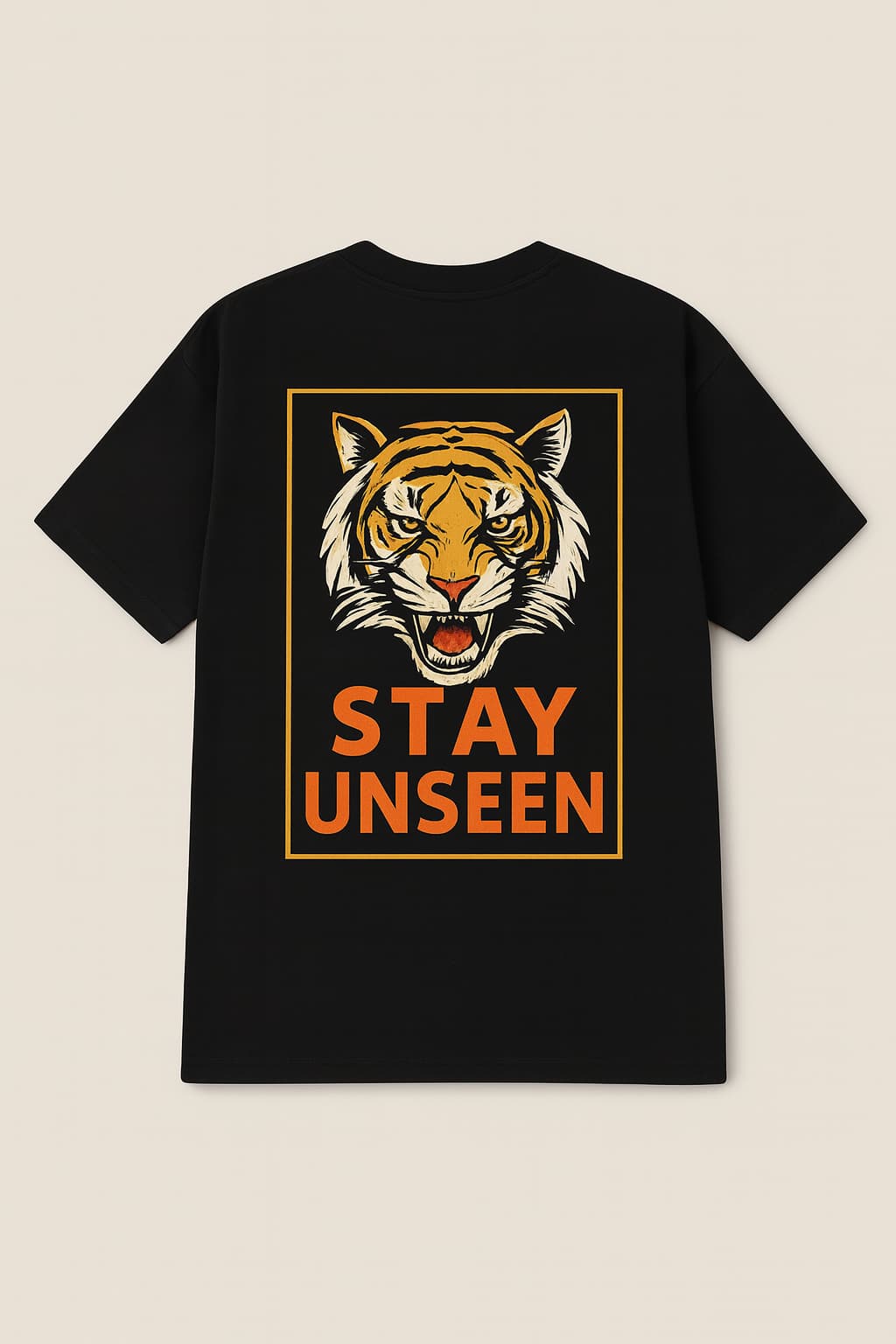 Unleash your inner strength with the Stay Unseen Tee. Featuring a fierce tiger illustration framed with bold typography, this tee is built for confidence.